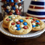 These cookies are an ideal summer dessert that’s both visually striking and delicious. They’re quick to prepare, use pantry staples, and require no special baking skills. The red, white, and blue M&M’s add a fun holiday touch, while the cookie base stays soft and chewy for days. Great for parties, gifting, or a patriotic-themed dessert table.