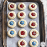 July Thumbprint Cookies are a charming, festive treat that brings color and flavor to any summer celebration. With their buttery base and fruity centers, these cookies offer a beautiful and delicious way to show your patriotic spirit. Make a batch for your next barbecue, holiday party, or just to enjoy a little red, white, and blue sweetness any time of year.