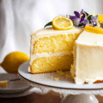 A light and airy lemon cake made with fluffy sponge layers, filled and frosted with tangy lemon cream cheese frosting – perfect for spring celebrations.