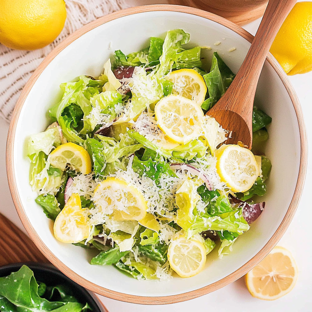 A crisp and refreshing Lemon Parmesan Salad featuring fresh greens, tangy lemon dressing, and savory parmesan shavings—perfect as a side or light main dish.