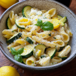 This pasta is creamy without being heavy, thanks to a lemony ricotta sauce that coats tender noodles and sautéed zucchini. It’s fresh, simple, and full of flavor—with a hint of Parmesan and a touch of citrus zing. Ideal for weeknight dinners or meatless Mondays!