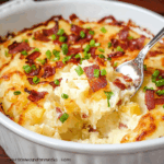 Ultra‑creamy mashed potato casserole loaded with cheese, bacon, and green onions, topped with buttery, crunchy breadcrumbs—perfect for comforting dinners or holiday sides.