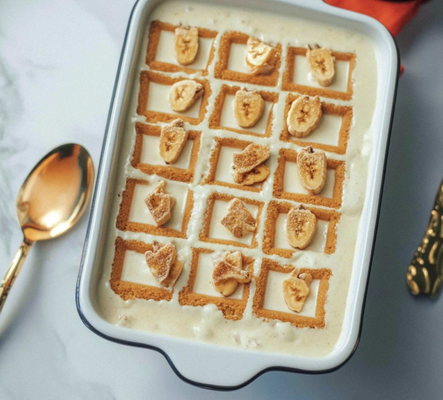 - Arrange a layer of banana slices over the wafers.
