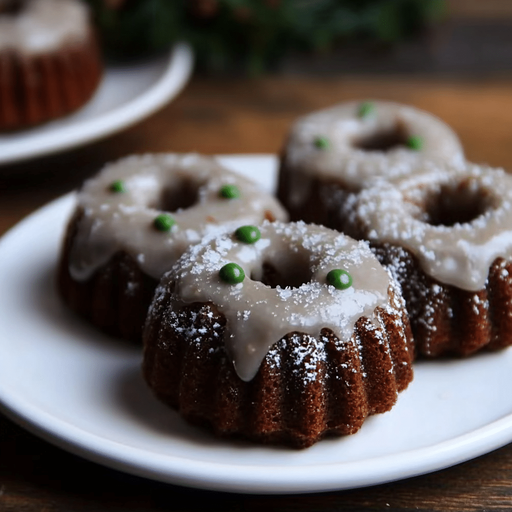 These Mini Gingerbread Bundt Cakes are packed with warm spices and molasses, offering a moist and flavorful holiday treat. Their adorable size makes them perfect for individual servings, and they’re finished with a drizzle of sweet glaze or powdered sugar for an elegant touch.