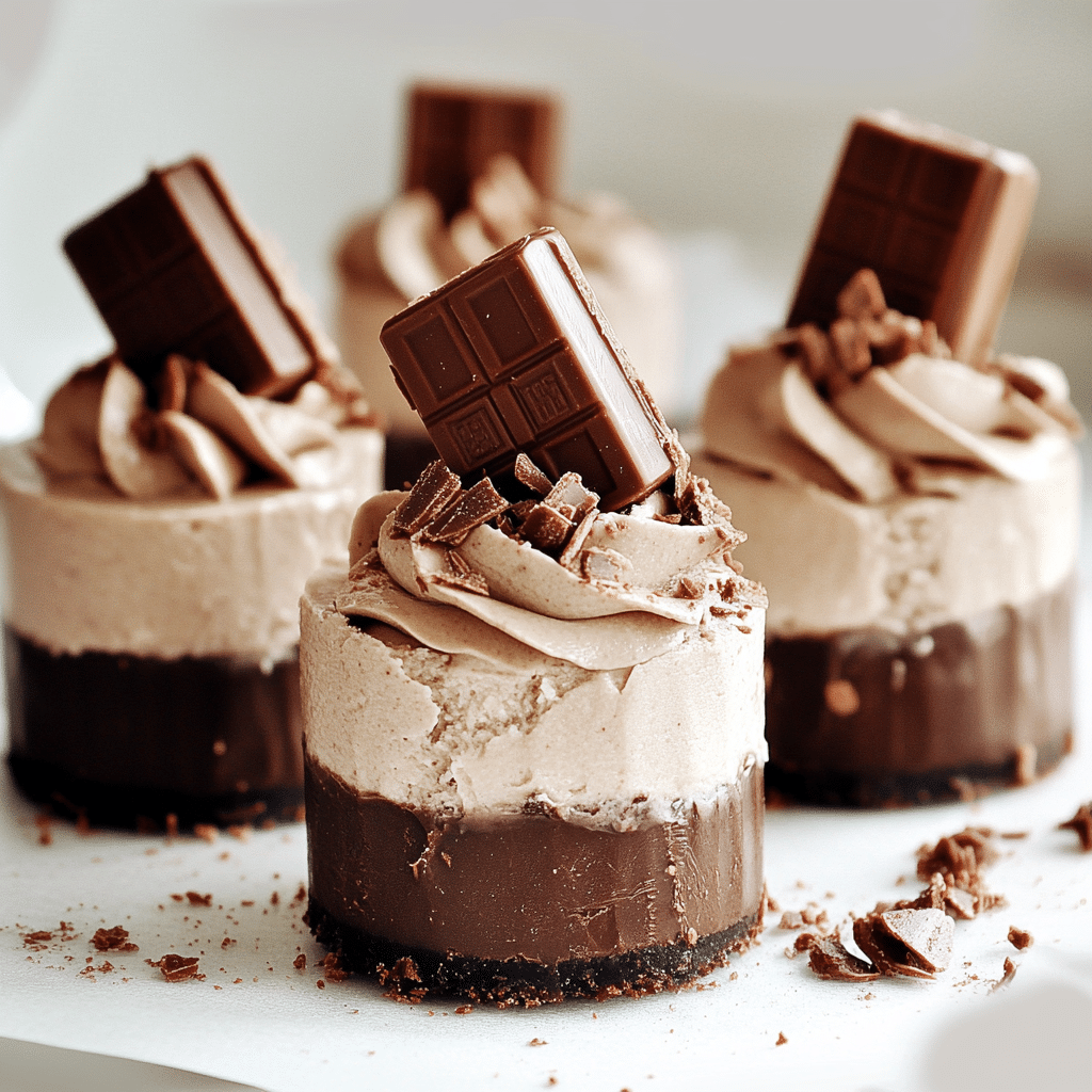 These Mini No-Bake Kit Kat Cheesecakes are the ultimate dessert for chocolate and cheesecake lovers! With a crunchy Kit Kat crust, a rich and creamy cheesecake filling, and even more Kit Kat pieces on top, these bite-sized treats are perfect for any occasion. Best of all, they require no oven time—just mix, chill, and enjoy!