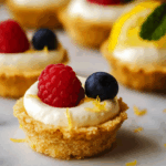 These Mini No-Bake Lemon Cheesecake Tarts are the perfect bite-sized dessert! With a buttery graham cracker crust, a creamy lemon-infused cheesecake filling, and a refreshing citrus flavor, they’re a light and tangy treat for any occasion. Plus, no oven required!