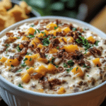 Mississippi Sin Dip is a decadent, cheese-filled dip that originated in the Southern United States. It combines a rich mix of cream cheese, sour cream, cheddar cheese, and ham, all baked together inside a hollowed-out loaf of bread to create a warm, gooey, and incredibly satisfying appetizer. The name “sin” playfully hints at the dip’s overwhelmingly indulgent nature, making it a guilty pleasure that’s hard to resist.