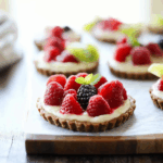 These No-Bake Mini Fruit Pizzas are fresh, colorful, and fun—featuring a crisp cookie crust topped with sweetened cream cheese and vibrant fruit. Perfect as an effortless, make-ahead dessert or snack!