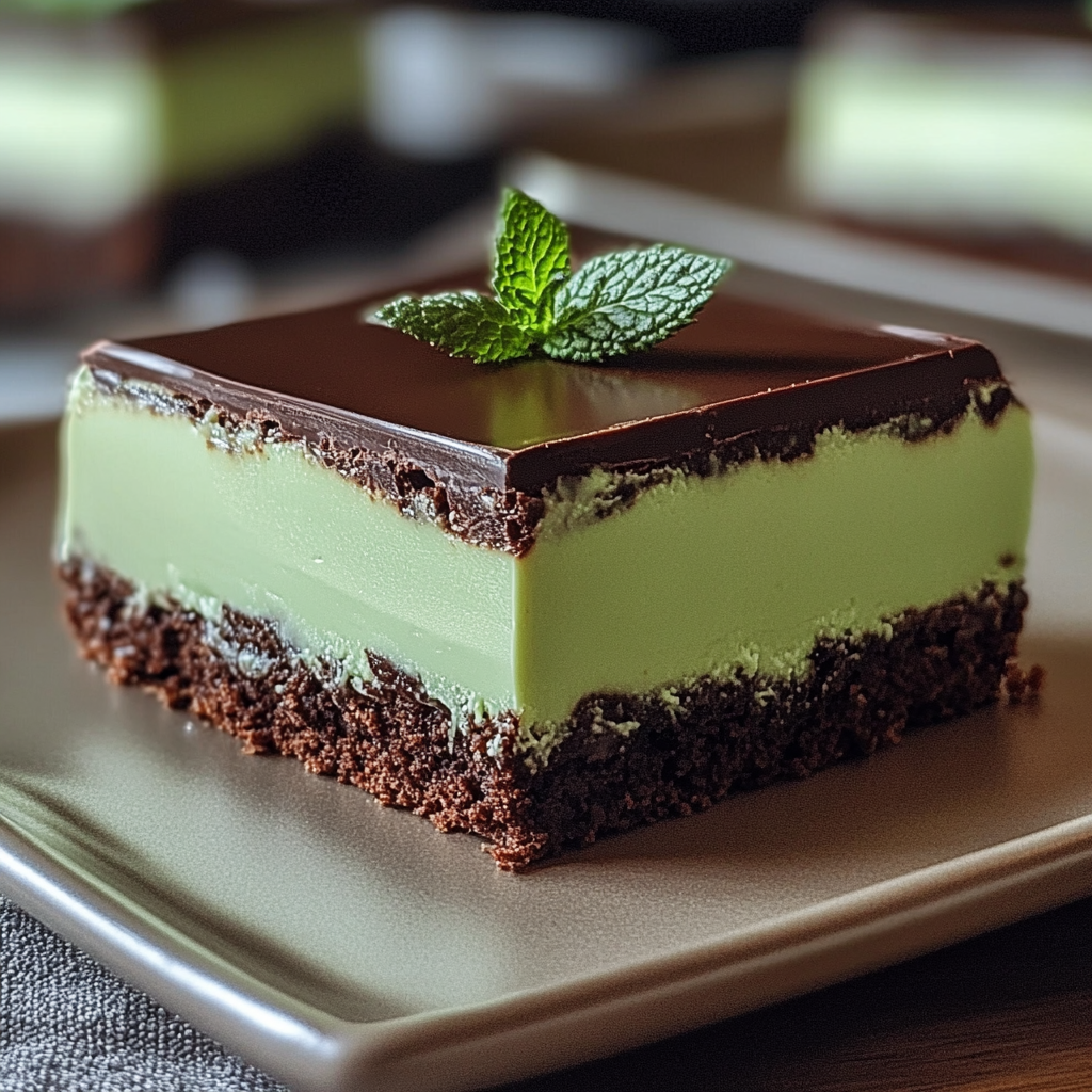 - Pour the melted chocolate over the mint layer and spread evenly.