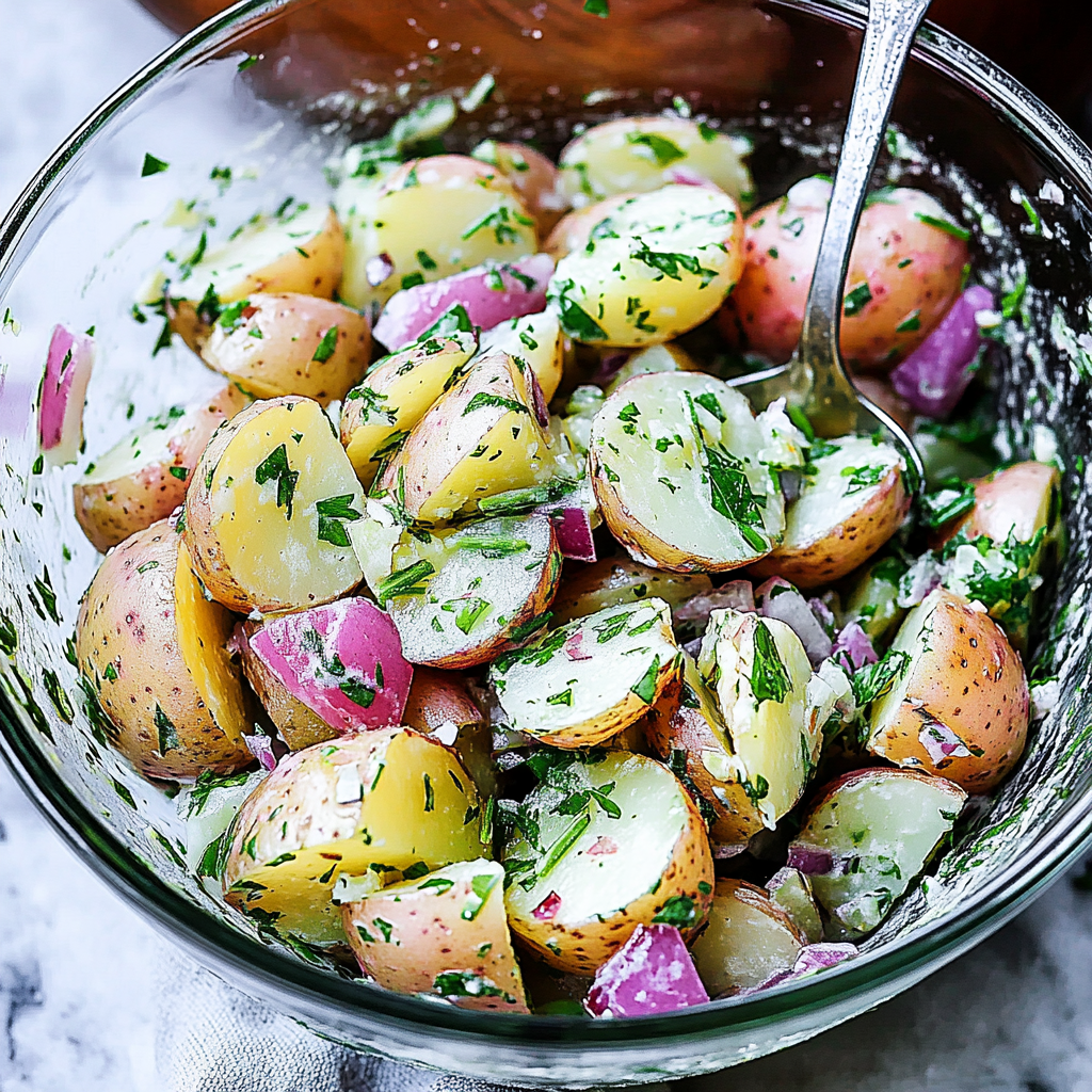 A light and refreshing potato salad made without mayonnaise, featuring fresh herbs, olive oil, and a tangy vinaigrette. Perfect for picnics, potlucks, or a healthy side dish option.