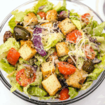 The Olive Garden House Salad is a refreshing and crisp side salad made famous by the popular Italian-American restaurant chain. It’s a simple mix of lettuce, tomatoes, onions, olives, pepperoncini, and croutons, all tossed in a tangy Italian dressing.