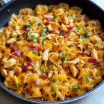 This One-Pan Monterey Chicken Pasta is a hearty, satisfying dish that brings together tender chicken, smoky bacon, tangy BBQ sauce, and gooey cheese—all tossed with pasta in a rich, flavorful sauce. Inspired by the flavors of Monterey Chicken, this recipe simplifies everything into one skillet for a fast and easy dinner.