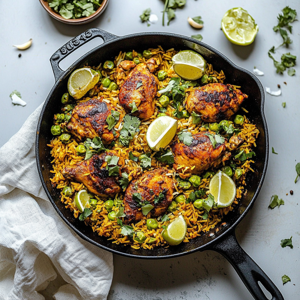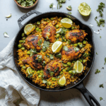 One Pan Tandoori Chicken with Spiced Coconut Rice is a vibrant, flavor-packed meal made in a single skillet. Tender chicken thighs are marinated in a yogurt-based tandoori spice blend, then seared and cooked alongside fragrant coconut rice infused with warm Indian spices. It’s a complete, wholesome meal with bold flavor and easy cleanup.