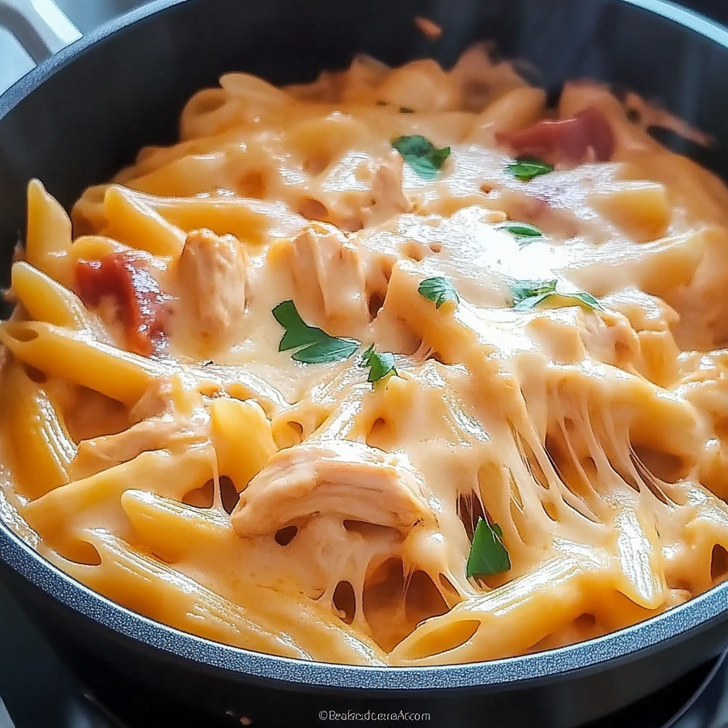 Comforting one-pot meal with tender chicken pieces, pasta, and a rich, creamy cheese sauce—all cooked together for a quick and hearty dinner.