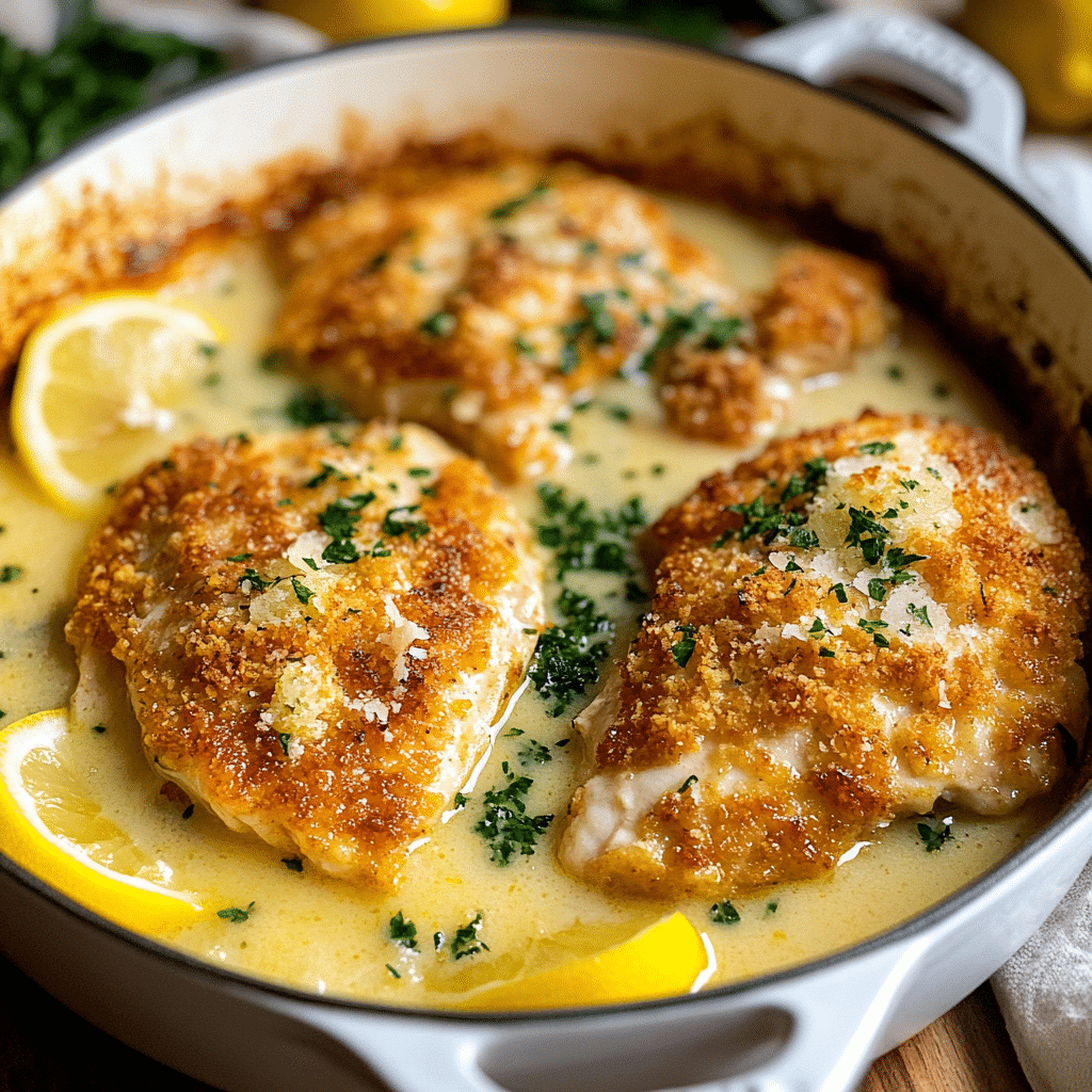 Parmesan Crusted Chicken with Lemon Butter Sauce is a crispy, golden-brown chicken dish coated in a flavorful Parmesan crust and topped with a zesty, buttery lemon sauce. This easy yet elegant meal is perfect for a weeknight dinner or a special occasion.