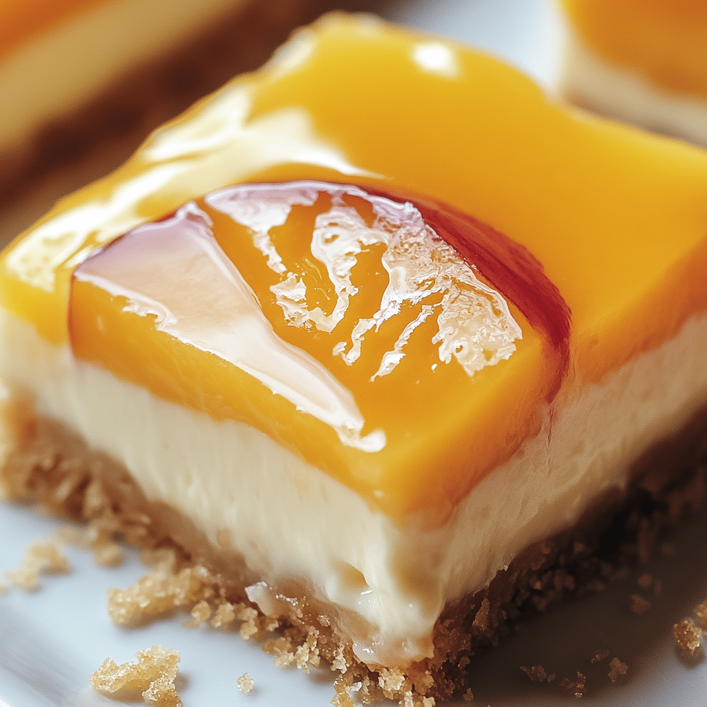 These Peaches and Cream Cheesecake Bars are a luscious dessert featuring a buttery crust, creamy cheesecake filling, and sweet, juicy peach topping. Perfect for summer gatherings or when you crave a fruity treat!