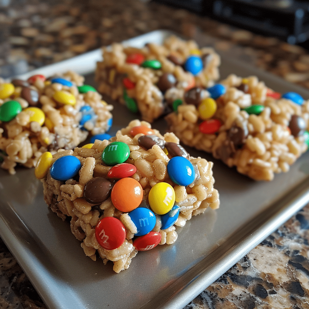 • Sweet and Salty: The peanut butter adds a rich, savory flavor that balances perfectly with the sweetness of the marshmallows and the crunch of the Rice Krispies. The M&M’s take the treat to the next level with bursts of chocolate and a pop of color.