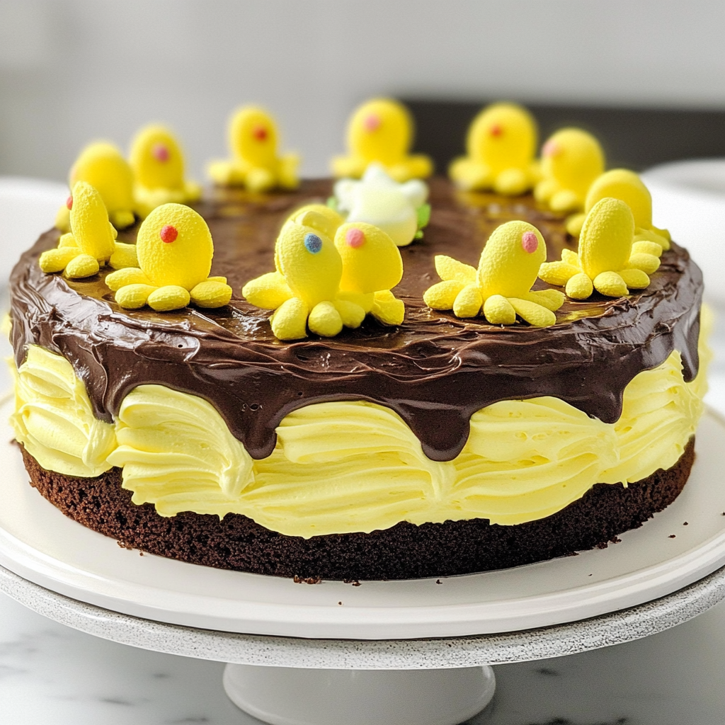 A whimsical and colorful layered cake inspired by the cheerful springtime vibes of Peeps marshmallow candies and bright sunflowers. This cake features fluffy layers, a creamy frosting, and eye-catching sunflower decorations that are perfect for festive celebrations or Easter parties.