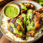 Peruvian Chicken with Green Sauce, also known as Pollo a la Brasa, is a flavorful and juicy roasted or grilled chicken dish seasoned with a blend of Peruvian spices. It’s typically served with ají verde, a spicy, creamy green sauce made with cilantro, jalapeños, and lime juice. This dish is a staple in Peruvian cuisine and is loved for its bold, smoky flavors and refreshing, zesty sauce.