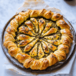 The Pesto and Goat Cheese Tarte Soleil is a stunning, savory pastry appetizer made from buttery puff pastry, creamy goat cheese, and vibrant pesto. Shaped like a radiant sun with twisted rays, this eye-catching tart is as fun to pull apart as it is delicious to eat. Perfect for holiday gatherings, brunches, or dinner parties, it’s a crowd-pleasing centerpiece that looks impressive but is surprisingly simple to make.