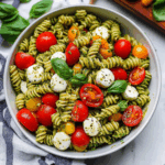 Pesto Pasta Salad with Tomatoes & Mozzarella is a fresh and flavorful dish featuring tender pasta tossed with vibrant pesto, juicy tomatoes, and creamy mozzarella, perfect for summer meals and gatherings.