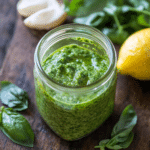 This Homemade Pesto is a vibrant, fresh sauce made with basil, garlic, pine nuts, Parmesan cheese, and olive oil. Perfect for pasta, sandwiches, or as a dip, it’s a versatile condiment that adds flavor to any dish.