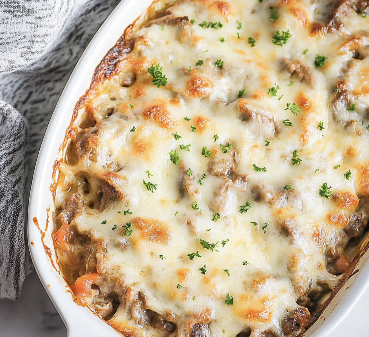 Philly Cheesesteak Casserole is a delicious twist on the classic sandwich, combining tender beef, sautéed peppers and onions, and gooey melted cheese in a comforting baked dish. This easy-to-make casserole is perfect for busy weeknights, potlucks, or a hearty family dinner.