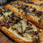 Philly Cheesesteak Garlic Bread merges the hearty, meaty flavors of a traditional Philadelphia cheesesteak sandwich with the crispy, buttery texture of garlic bread. This dish uses juicy slices of steak, melted cheese, onions, and peppers, all loaded onto a garlicky, toasted bread. It’s a fusion that celebrates the best of both worlds, making it a must-try for everyone who loves indulging in new and exciting flavors.