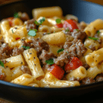 This Philly Cheesesteak Pasta combines all the flavors of the classic sandwich in a creamy, cheesy pasta dish. Packed with tender beef, sautéed peppers, onions, and gooey cheese, it’s a one-pot meal that’s comforting and delicious!
