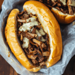 This Philly Cheesesteak recipe features thinly sliced beef, sautéed onions, and melted cheese stuffed into a soft hoagie roll — a delicious taste of Philadelphia’s iconic sandwich.