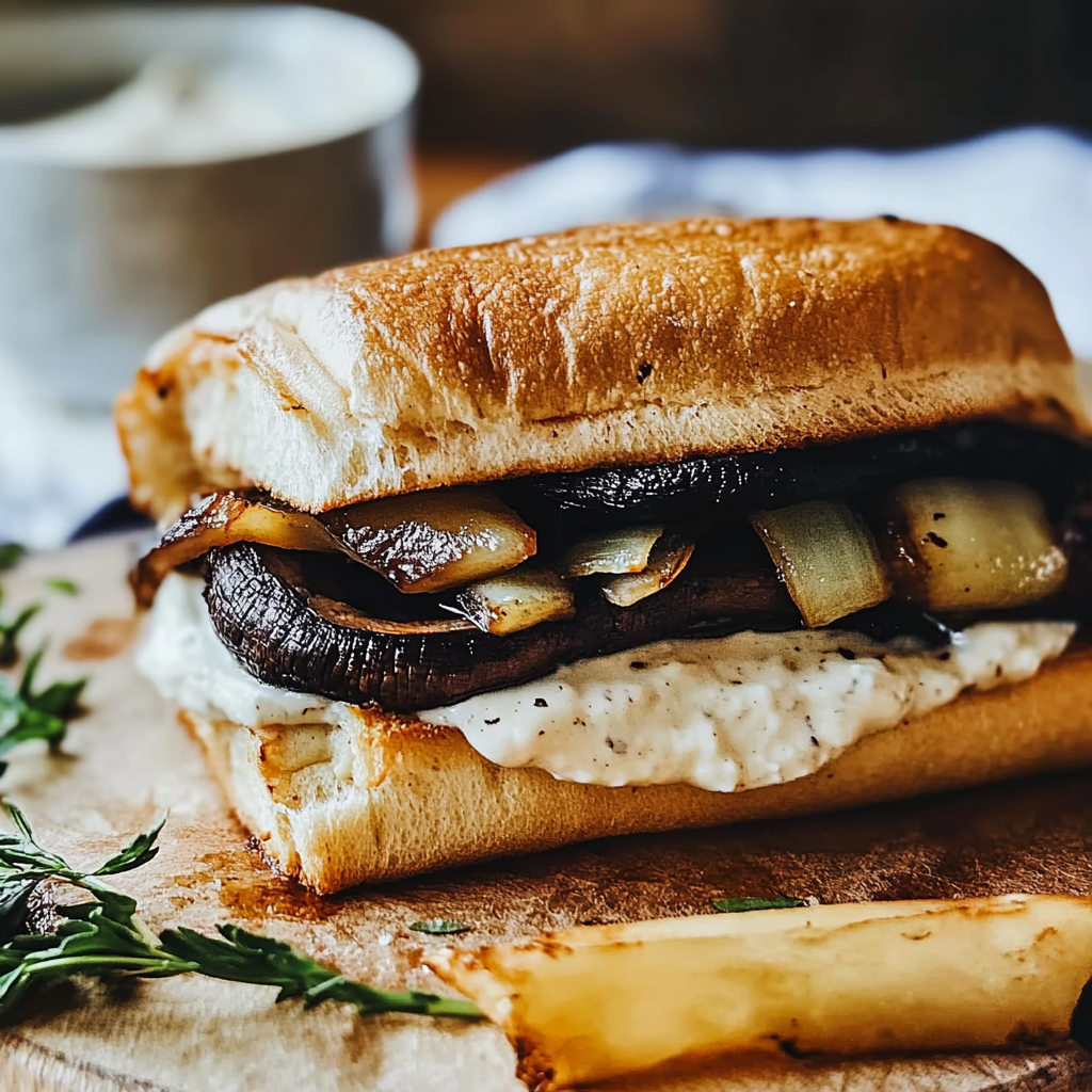 Portobello French Dip with Horseradish Aioli is a bold and satisfying vegetarian twist on the classic French dip sandwich. Thick, meaty portobello mushrooms are roasted until tender and juicy, layered on toasted rolls with melty cheese, and topped with zippy horseradish aioli. Served with a savory homemade au jus for dipping, this sandwich delivers big flavor and hearty comfort—without any meat.