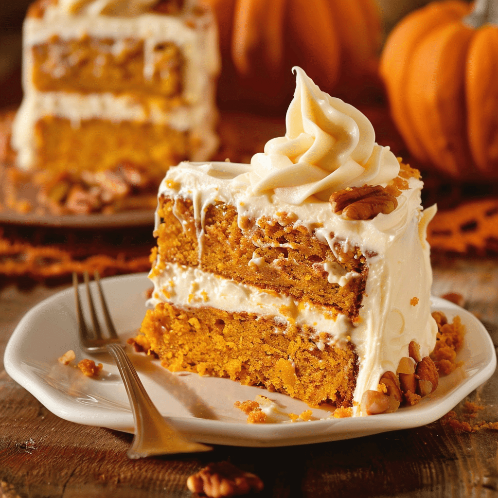 For added flair, consider garnishing your pumpkin cake with toasted pecans or walnuts, a sprinkle of cinnamon, or even a drizzle of caramel sauce.