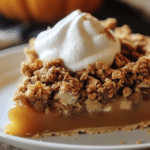 Preheat the oven: Preheat your oven to 350°F (175°C). Grease a 9×13-inch baking dish or a deep pie dish. Make the filling: In a large bowl, whisk together pumpkin puree, sugar, heavy cream, milk, eggs, pumpkin pie spice, cinnamon, salt, and vanilla extract until smooth. Pour the mixture into the prepared baking dish. Prepare the topping: In a medium bowl, mix oats, flour, brown sugar, cinnamon, nutmeg, and pecans (if using). Drizzle in the melted butter and stir until crumbly and evenly combined. Assemble the crisp: Evenly sprinkle the topping over the pumpkin filling. Bake: Place the dish in the oven and bake for 40-50 minutes, or until the filling is set and the topping is golden brown. The center should jiggle slightly but not be liquid. Cool and serve: Allow the crisp to cool for 10-15 minutes before serving. Serve warm with vanilla ice cream or whipped cream.
