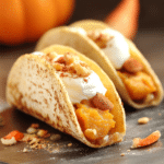 These Pumpkin Pie Tacos are a creative twist on a classic pumpkin pie! Perfect for fall gatherings or Thanksgiving, they feature crispy taco shells filled with creamy pumpkin pie filling and topped with whipped cream and a dash of cinnamon. They’re easy to make, fun to eat, and sure to impress!