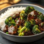 This Quick and Easy Beef and Broccoli is a savory, tender, and flavorful stir-fry made with juicy beef, crisp broccoli, and a rich garlic-ginger soy sauce. It’s better than takeout and ready in under 30 minutes—perfect for a busy weeknight dinner! Serve it with rice, noodles, or cauliflower rice for a complete meal.