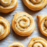 Puff pastry pinwheels: Store in the fridge for up to 3 days and reheat in a 350°F (175°C) oven for 5–7 minutes until warm and crisp. Avoid microwaving to preserve the texture.