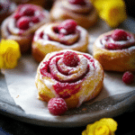 Raspberry Cinnamon Rolls are a delightful twist on a classic favorite, offering a fruity burst of flavor alongside the warm, comforting taste of cinnamon. With a simple dough, sweet filling, and creamy glaze, these rolls are easy to make and incredibly satisfying. Serve them up at your next family gathering, holiday brunch, or as a special treat just for yourself. Enjoy the perfect combination of sweetness, spice, and fresh fruit with every bite!
