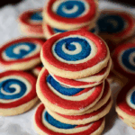 Red, White and Blue Pinwheel Icebox Cookies are a colorful, crowd-pleasing treat that’s as fun to make as it is to eat. With a striking swirl design and buttery vanilla flavor, they’re perfect for patriotic celebrations and beyond. Make them ahead, customize the colors, and enjoy the simplicity and charm of this festive cookie favorite.