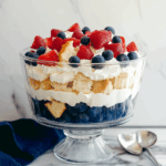 Red, White and Blue Trifle is a patriotic and refreshing layered dessert made with cake, whipped cream, and fresh berries—perfect for 4th of July celebrations or summer gatherings.