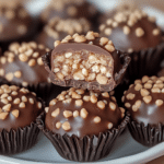 These Reese’s Chocolate Peanut Butter Crunch Bites are a no-bake, bite-sized treat that combines creamy peanut butter, crunchy cereal, and chunks of Reese’s candy. Perfect for satisfying your sweet tooth or serving at parties, they’re quick, easy, and absolutely delicious!