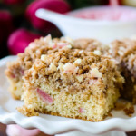 Rhubarb Streusel Coffee Cake is a moist and tender cake filled with tart rhubarb and topped with a buttery cinnamon streusel. It’s a perfect treat for brunch, afternoon coffee, or dessert.