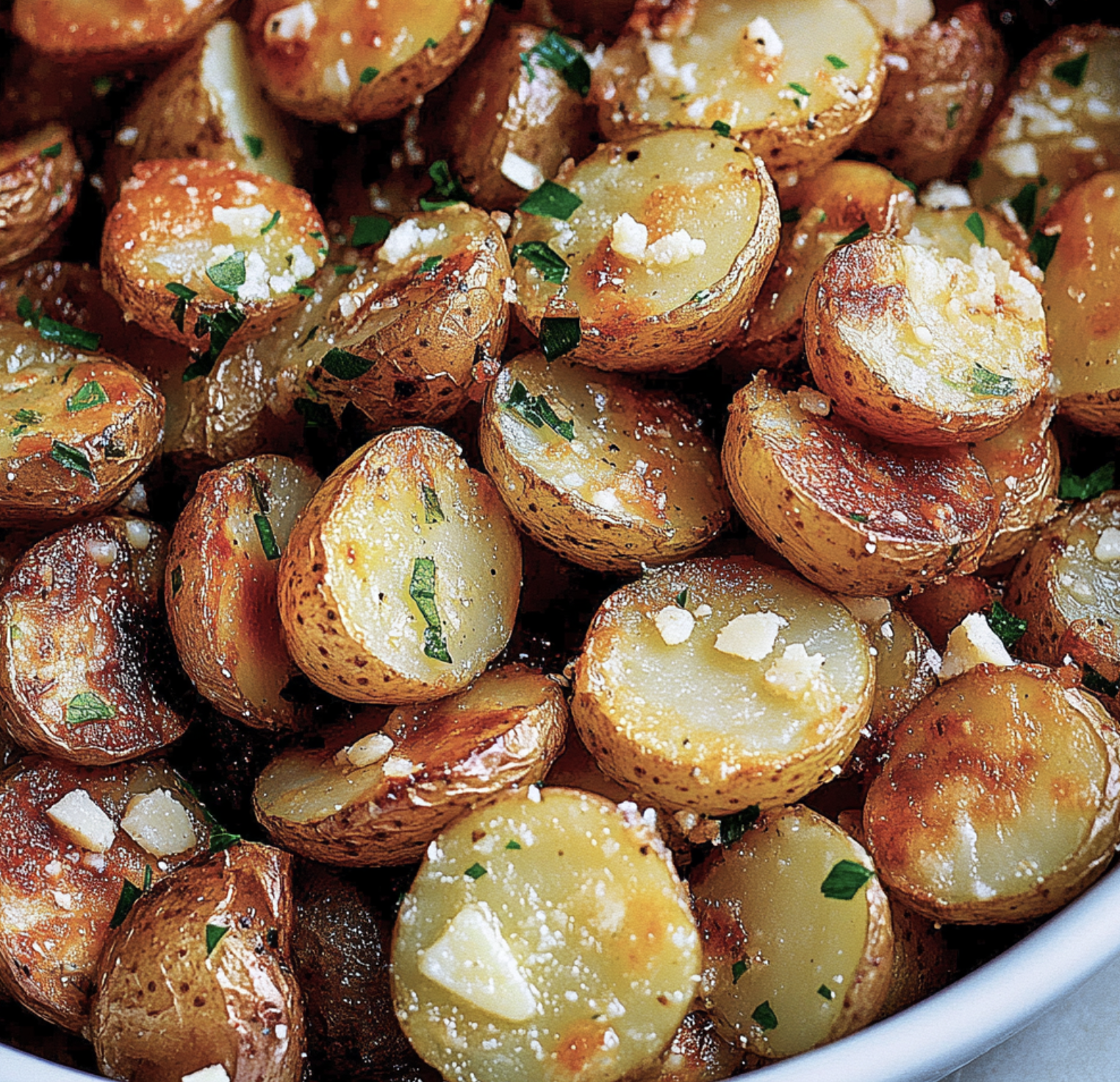Golden roasted baby potatoes tossed in savory garlic-butter and Parmesan for a crispy, flavorful side dish.