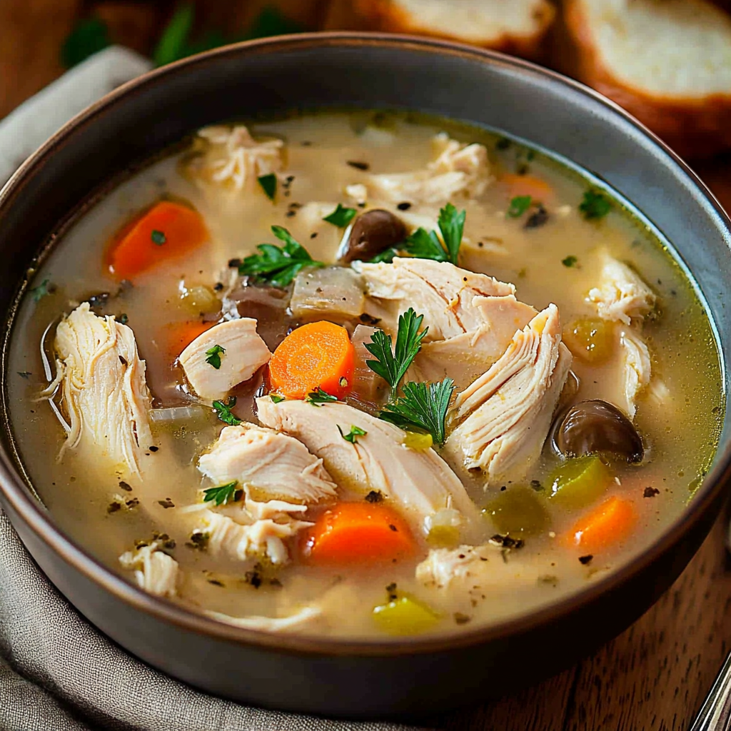 A cozy and flavorful soup made with tender rotisserie chicken, hearty vegetables, and herbs — perfect for a quick, comforting meal.