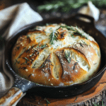 This Rustic No Knead Rosemary Garlic Bread combines aromatic rosemary and garlic in a beautifully crusty, artisan-style loaf. No kneading is required—just mix, let it rise, and bake for a deliciously easy homemade bread.