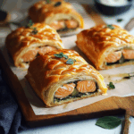 Salmon Wellington, also known as salmon en croûte, is a sophisticated dish that combines tender salmon fillets with a creamy spinach filling, all encased in a golden, flaky puff pastry. This elegant meal is perfect for special occasions or when you want to impress your guests with minimal effort.