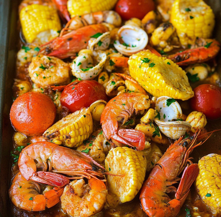A flavorful and hearty seafood boil loaded with shrimp, crab, corn, potatoes, and sausage, seasoned to perfection with Cajun spices.