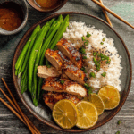 Sesame Miso Chicken and Coconut Rice is a deeply flavorful, umami-rich dish that brings together caramelized, miso-marinated chicken with fluffy, aromatic coconut rice. The sesame-miso glaze gives the chicken a savory-sweet punch, while the creamy coconut rice offers a subtly sweet, fragrant base that perfectly balances the bold flavors. It’s an easy, satisfying recipe ideal for a weeknight meal or a cozy dinner with friends.
