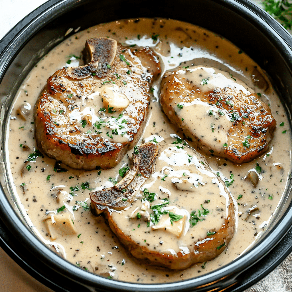 These Slow Cooker Pork Chops with Garlic Parmesan Sauce are a creamy and flavorful meal that’s perfect for busy days. Tender pork chops simmered in a rich, garlicky Parmesan sauce create a dish that feels indulgent yet effortless. Serve over mashed potatoes, rice, or pasta for a complete comfort meal.