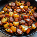 Smoked Sausage and Potatoes Skillet is a hearty, one-pan meal packed with crispy potatoes, savory smoked sausage, and tender vegetables all sautéed together until golden and flavorful. This comforting dish is quick to prepare, making it perfect for busy weeknights or laid-back weekend dinners.