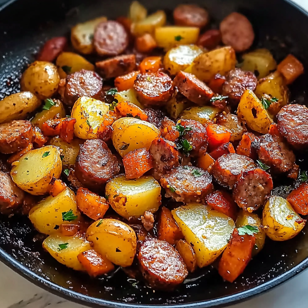 A hearty and flavorful one-pan meal made with smoky sausage, tender potatoes, and colorful bell peppers. It’s a simple, satisfying dish perfect for busy weeknights.